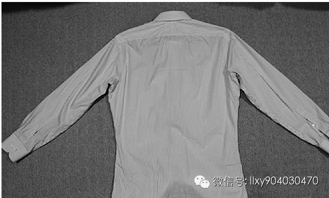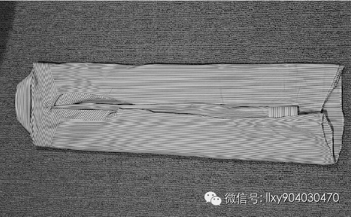第三步:把衬衫内侧外翻对折,保证折叠后宽度与领口宽度一致。