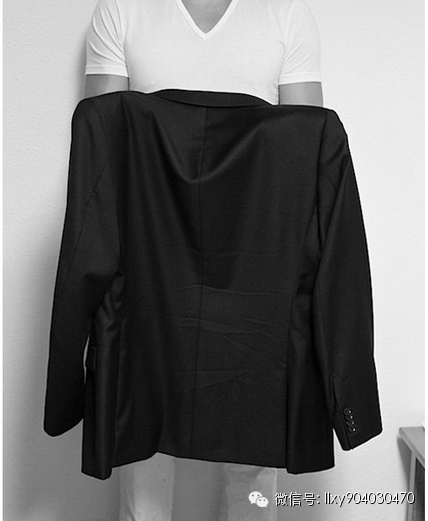 第一步:将双手放到西装外套的肩部,让外套内部面向自己。