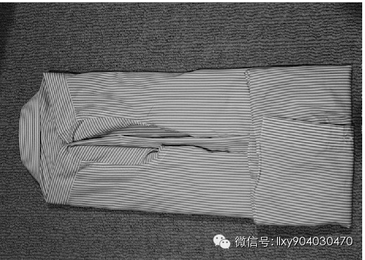 第二步:把外套对折,即把两个肩膀对折到一起。